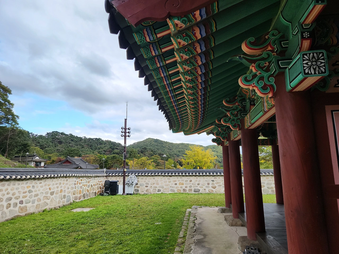 햇살이 기둥을 타고 흘러내리며 내 어깨 위에 머물렀고, 바람은 단청의 무늬를 따라 조용히 흘러갔다.