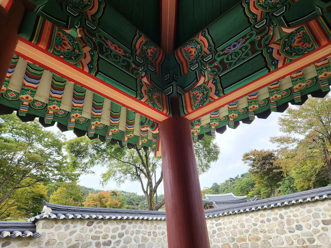 누가 먼저랄 것도 없이, 각자의 마음이 단풍잎처럼 조용히 흩날리며 한 줄의 시가 되어 흘러나왔다. 바람은 우리의 침묵을 대신해 단청의 무늬를 흔들었고, 햇살은 그 시 위에 따스한 여운을 더했다.