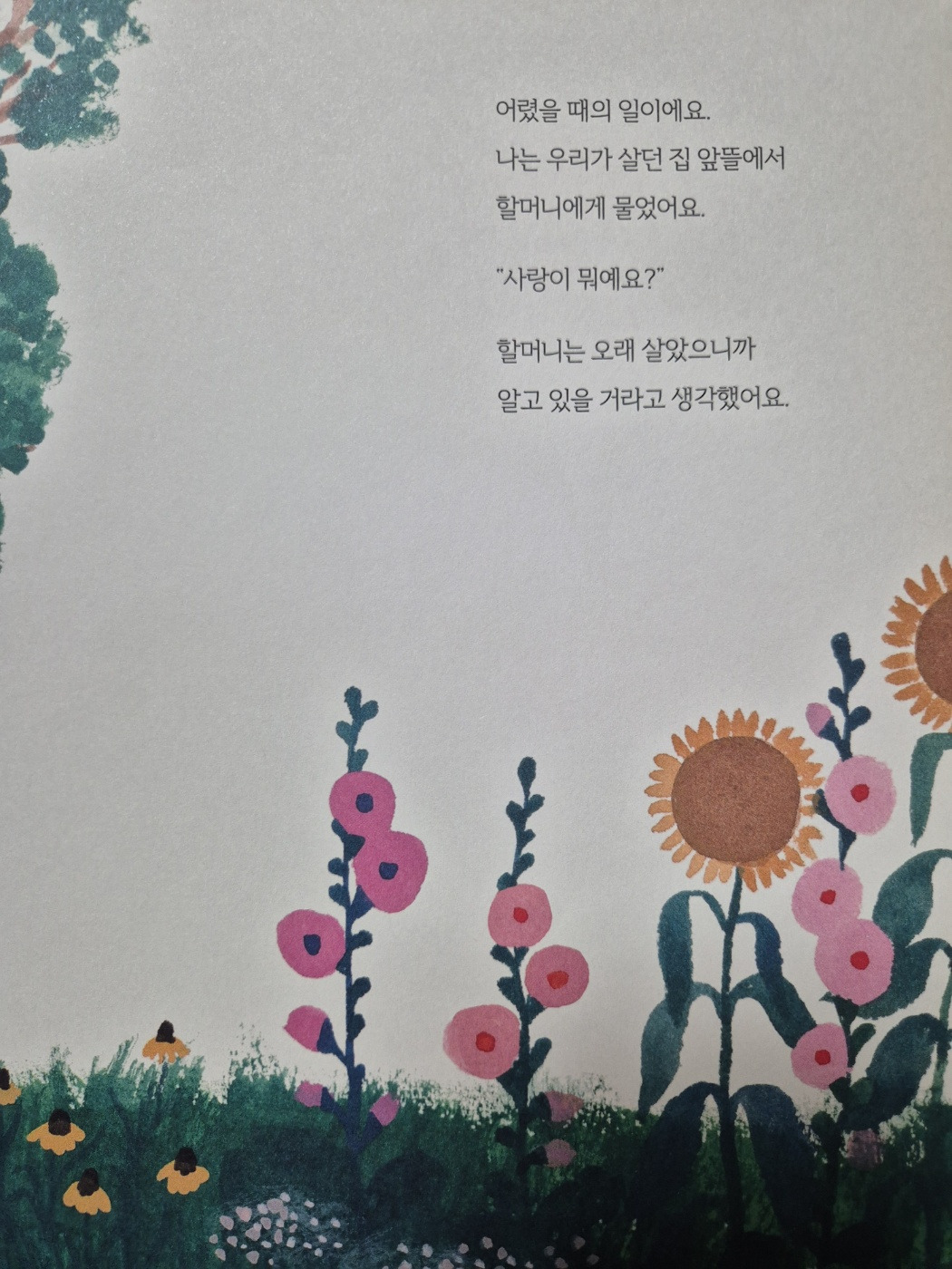 여행을 마치고 집에 돌아온 소년은 할머니에게 사랑이 무엇인지 알았다고 합니다.