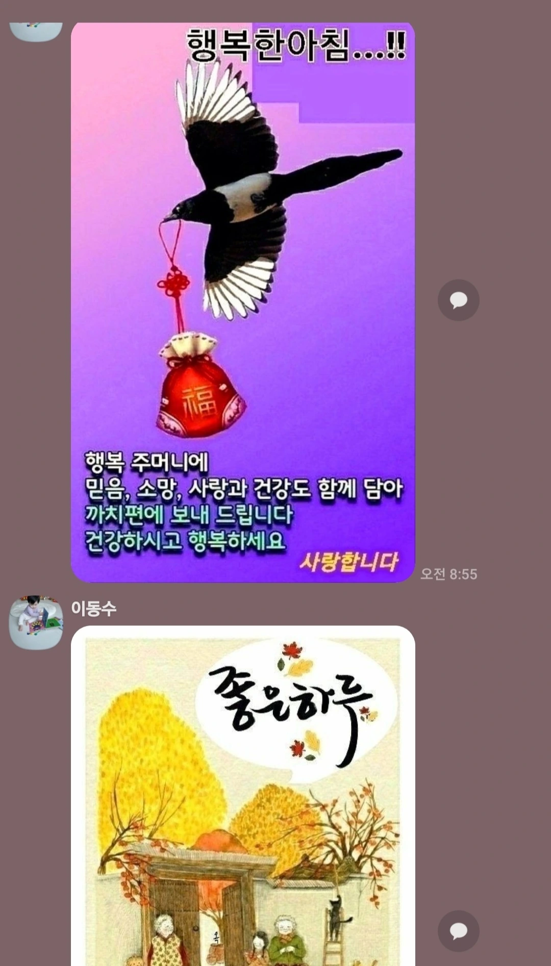 연이어서 사진만 달리 한 카톡 몇 통이 더 오고야 오늘 문자세례가 끝이 난다.