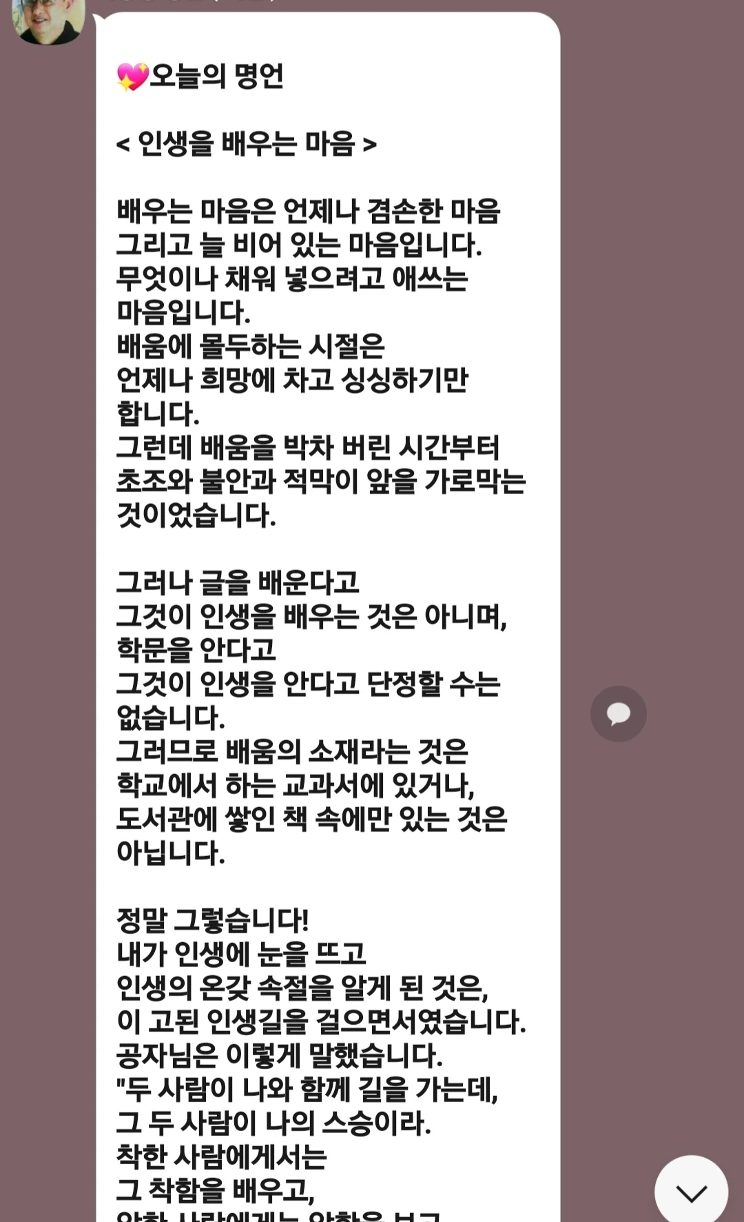 거의 매일 나한테 카톡을 보내주고 계시는 집안 형님이 보내신 카톡이었다.