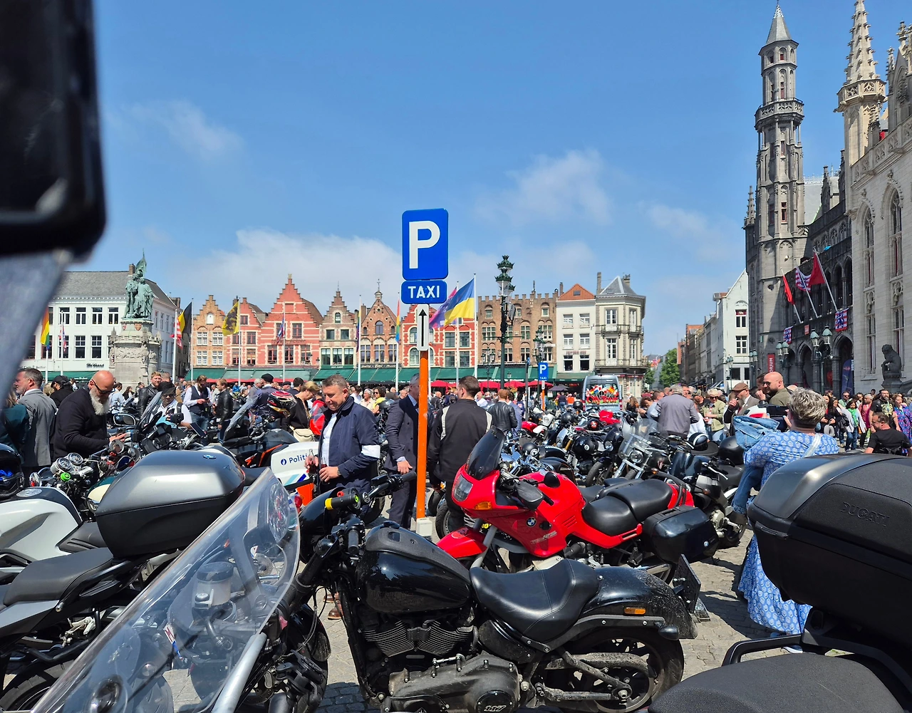 종루와 성모교회를 지나 마르크트 광장에 도착하니 광장 한쪽으로 나란히 서 있는 길드하우스들이 보였다. 넓은 광장은 오토바이 라이더들의 모임이 있는지 절반 가까이 오토바이들이 주차되어 있고 사람들로 북적였다.