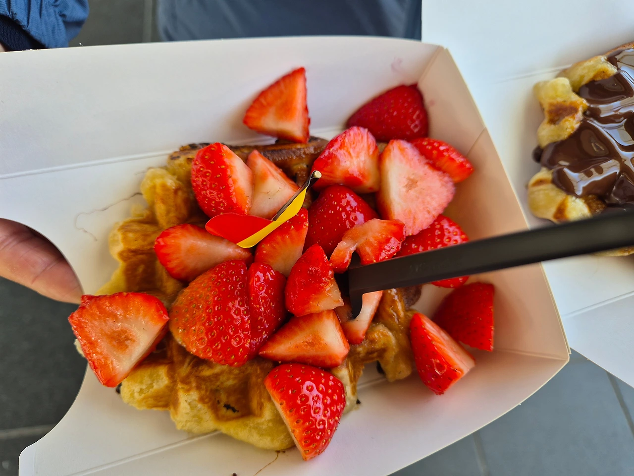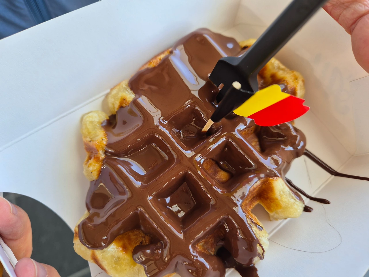 브뤼헤 기차역으로 돌아오는 길에 화장실 사용도 할 겸 카페에서 커피를 마셨다. 인근에 있는 와플집에서 와플을 먹었는데 살짝 쫄깃하고 겉바속촉함이 일품이었다. 이 맛에 반해 이날 이후 매일 한 개씩 사먹었던 벨기에 와플.