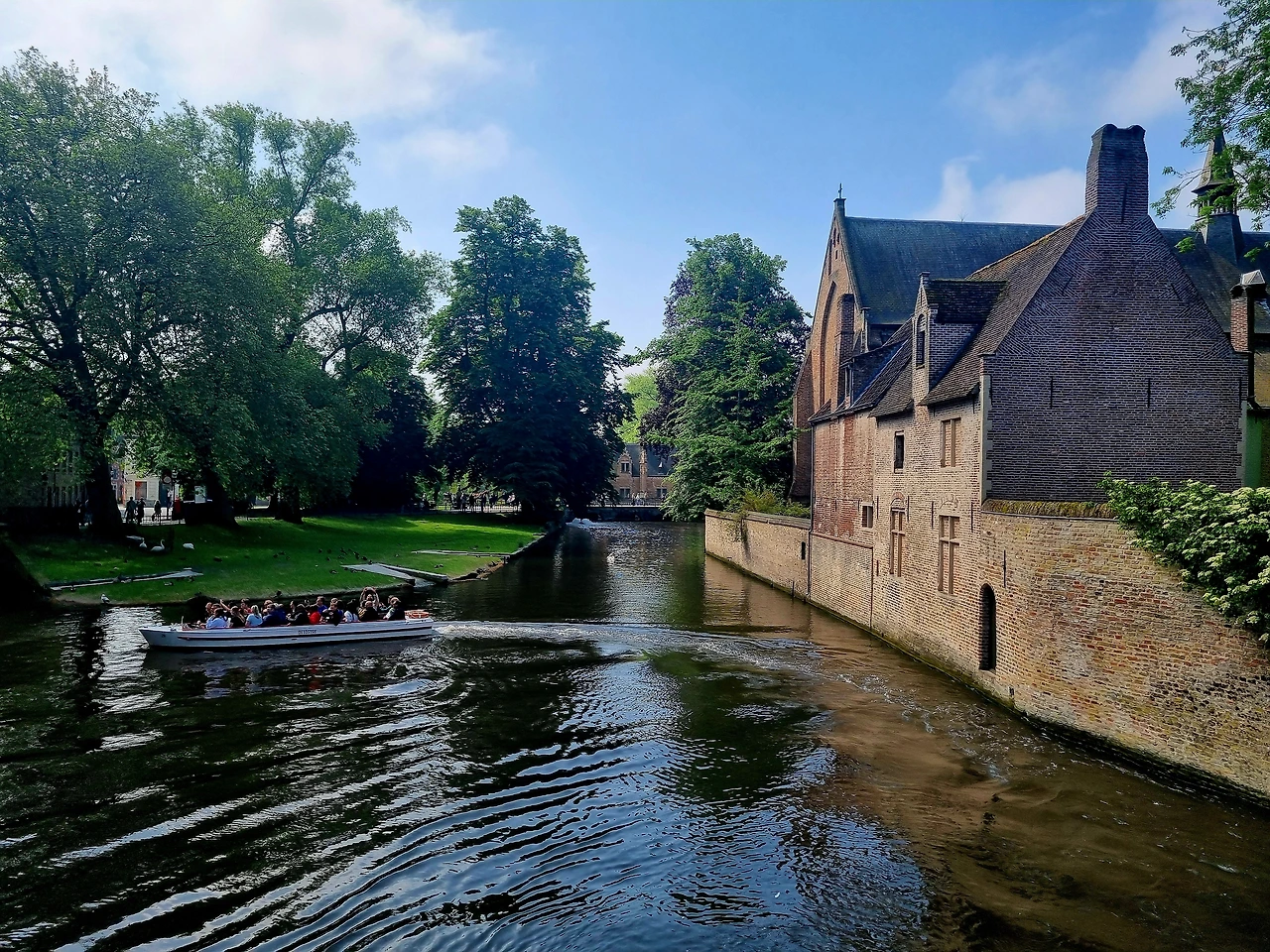 1시간 후에 브뤼헤역에 내렸다. 브뤼헤는 역사지구 전체가 중세의 모습을 간직하고 있어 세계문화유산으로 지정된 아름다운 물의 도시라고 가이드북은 적고 있다. 기차에서 역사지구로 가는 길은 나무들이 많아 공기 속에서 깊은 숲 향기가 났다. 길 한쪽으로는 개울이 따라 흐르고 있었다. 조금 더 걸어 들어가자 아름다운 운하가 나오고 이어 오랜 세월을 지나온 중세시대 건물들이 보였다.