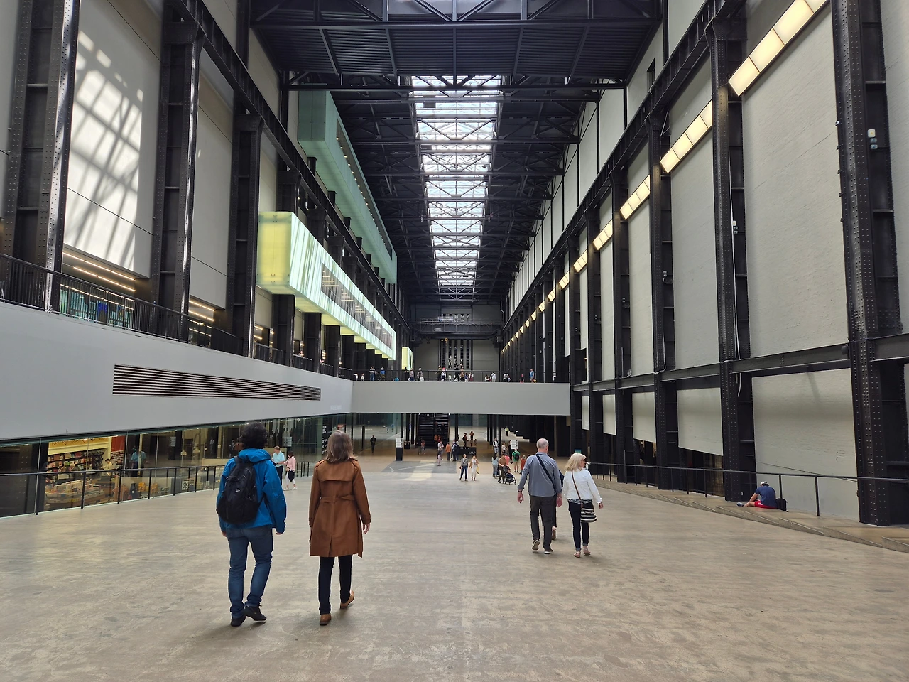 템즈강변에는 버스킹을 하는 뮤지션들과 산책을 즐기는 사람들이 많았다. 밀레니엄 브리지를 내려와 테이트모던으로 들어갔다. 미술관이 소장한 작품들보다 건물이 궁금했던 터였다. 입구를 지나자 중앙 로비는 완만한 경사를 이루며 아래로 향해 있었다. 통행을 방해하지 않는다면 자유롭게 바닥 어디에 앉아도 좋았다. 방문자들에게 편안한 휴식공간으로도 열려있는 듯했다.