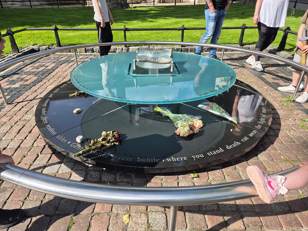 런던탑 중앙 뜰로 들어서자 푸른 잔디 한가운데 앤 불린이 참수당한 현장이 보였다. 역사의 현장에 서면 책 속에 박제되었던 역사에 피가 돌며 현존으로 살아오는 듯한 느낌을 받곤 한다. 특히 생과 사를 가른 현장일수록 그 느낌은 배가 된다.
