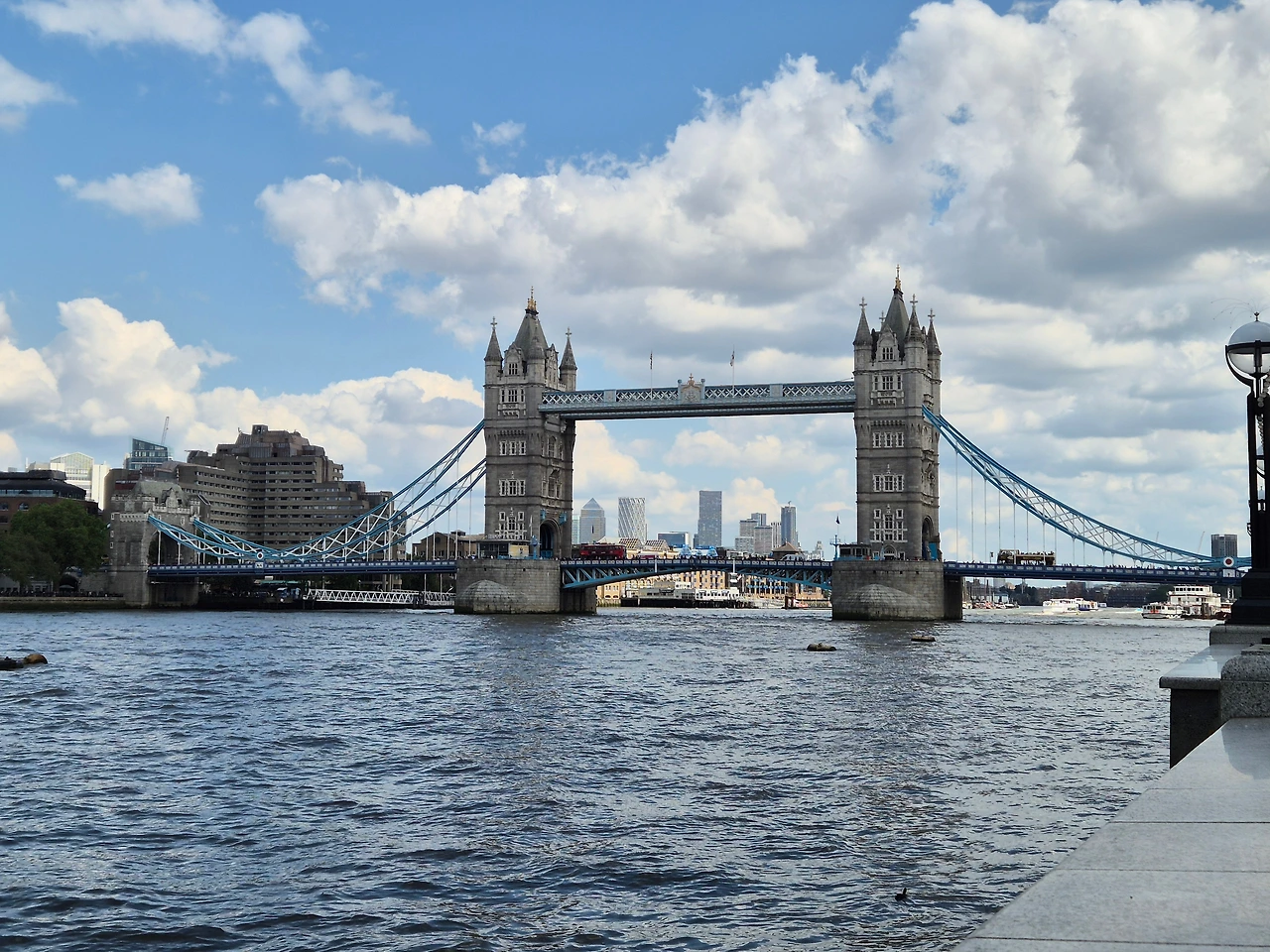 버로우마켓을 나와 템즈강을 따라 걸었다. 안전을 위한 석조 난간이 템즈강을 따라 이어졌다. 타워브리지가 가까이 보이는 지점에 이르자 세계 각지에서 모여든 관광객들이 타워브리지를 배경으로 사진을 찍느라 난간마다 빼곡했다. 현수교과 도개교로 이루어진 고딕양식의 타워브리지는 마치 드레스 위에 푸른 숄을 걸친 우아한 여성을 연상케 했다.