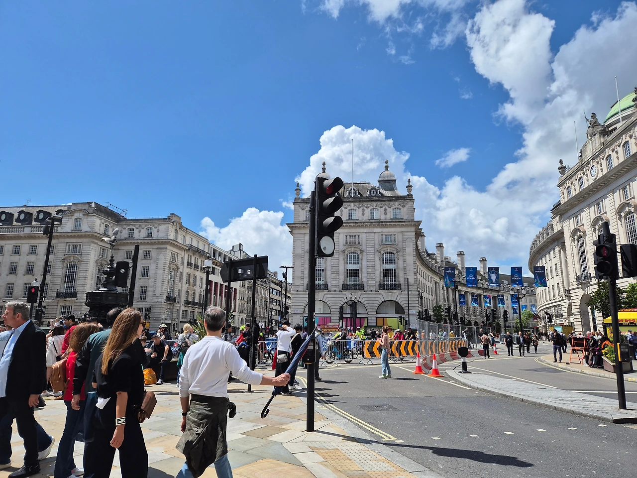 피커딜리 광장의 안테로스 동상 앞에는 관광객들로 가득했다. 광장 한쪽에서는 버스킹이 한창이었다.