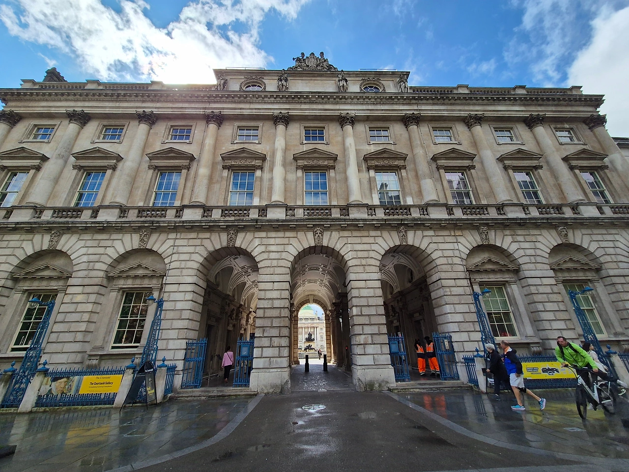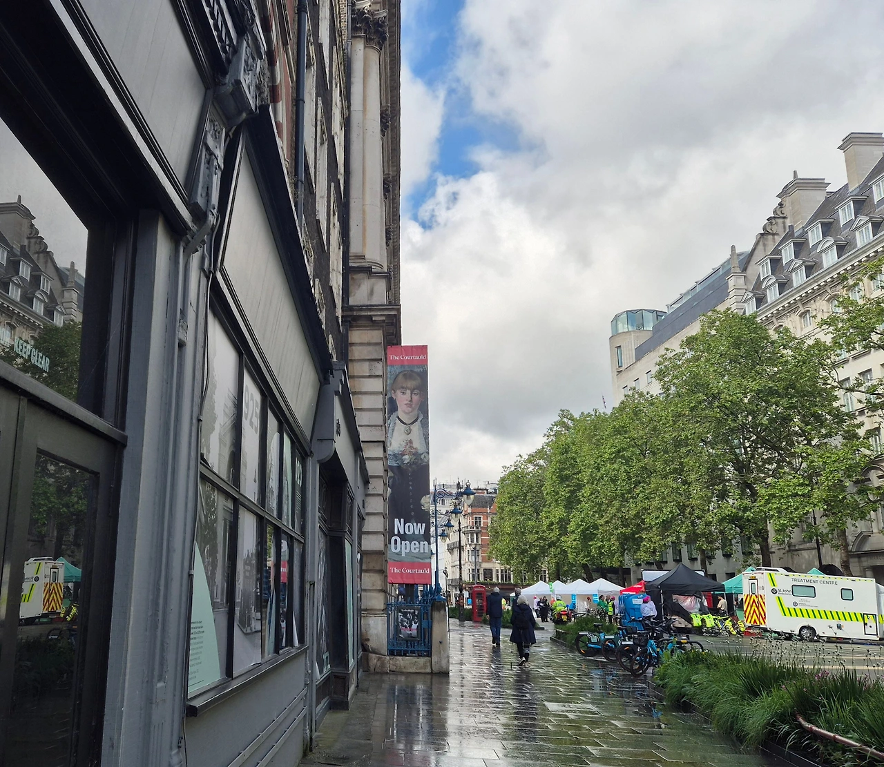 런던에서 3일째 되던 날 아침, 코톨드 갤러리에 가기 위해 숙소를 나섰다. 도로가 촉촉하게 젖어 있는 걸 보니 밤새 비가 내렸던 모양이다. 템플역에서 내려 템즈강을 따라 걷다 보니 외벽에 에두아르 마네의 작품 <폴리 베르제르 바>가 프린트된 현수막이 붙은 건물이 보였다. 단번에 코톨드 갤러리임을 알았다.