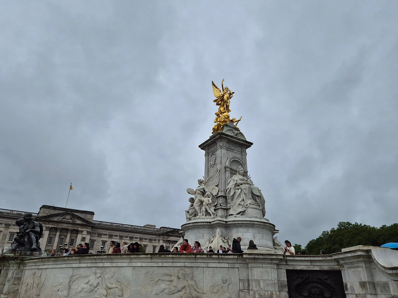 버킹엄궁이 가까워지자 사람들이 점점 늘어나더니 궁 앞에 다다르자 이미 많은 사람들이 근위병 교대식을 보기 위해 바리케이드를 사이에 두고 모여 있었다. 버킹엄궁 앞에는 빅토리아 메모리얼이 흐린 하늘을 향해 우뚝했다.