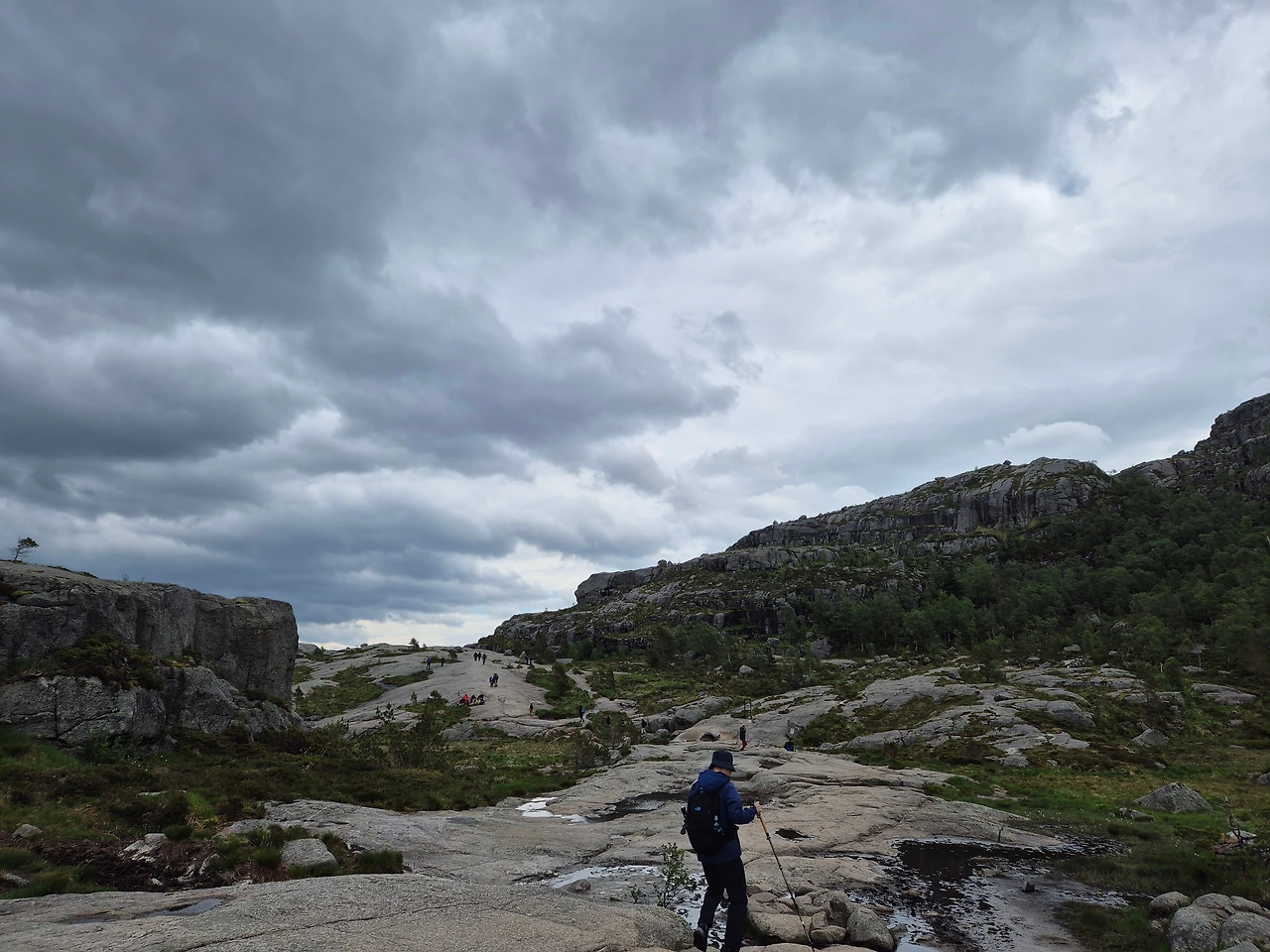 트래킹 출발지점에 도착하니 하늘에서 비를 뿌리기 시작했다. 남편은 배낭에서 우비를 꺼내 주며 힘들면 돌아와도 되니 무리하지 말자고 위로의 말을 건넸다. 뤼세 피오르에 우뚝 솟아 있는 600미터 수직 절벽인 프레이케스톨렌까지는 넉넉잡아 왕복 5시간이면 충분할 터였다.