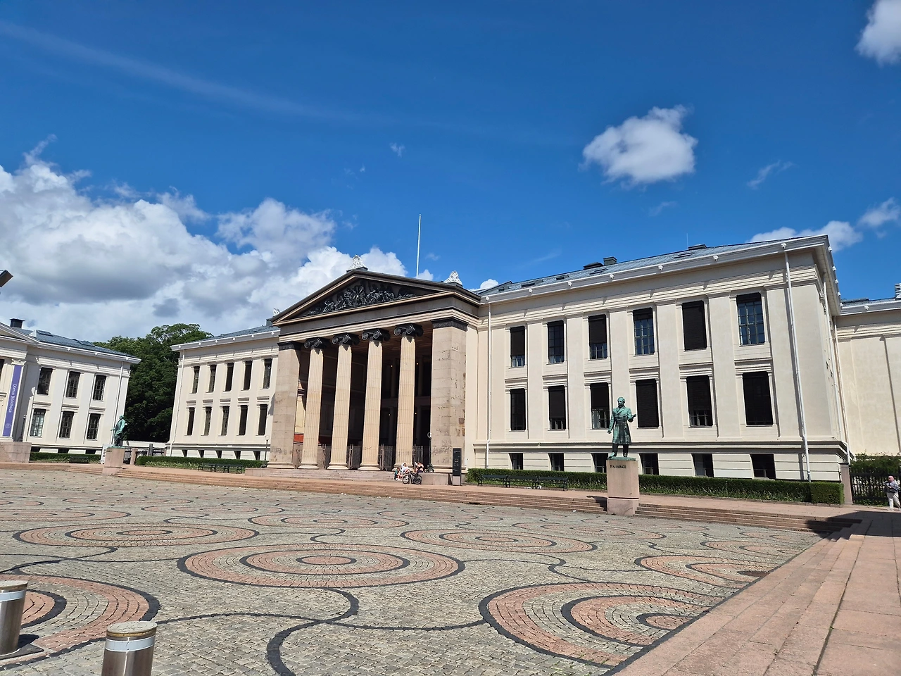 칼 요한 거리를 걸었다. 오슬로 대성당을 보고 국회의사당 앞을 지나자 뭉크가 자주 드나들었던 160여 년 된 그랜드카페가 보였다. 이어 도리아식 기둥을 가진 오슬로 대학 건물이 자리하고 있었다. 1911년 뭉크는 오슬로 대학 강당의 벽화 공모전 작가로 선정되어 5년 후 그의 작품들은 오슬로 대학 강당의 벽면에 걸리게 된다. 노르웨이 지폐 1000 nok 앞뒷면에는 뭉크와 이 벽화의 작품 <태양>이 들어 있다.