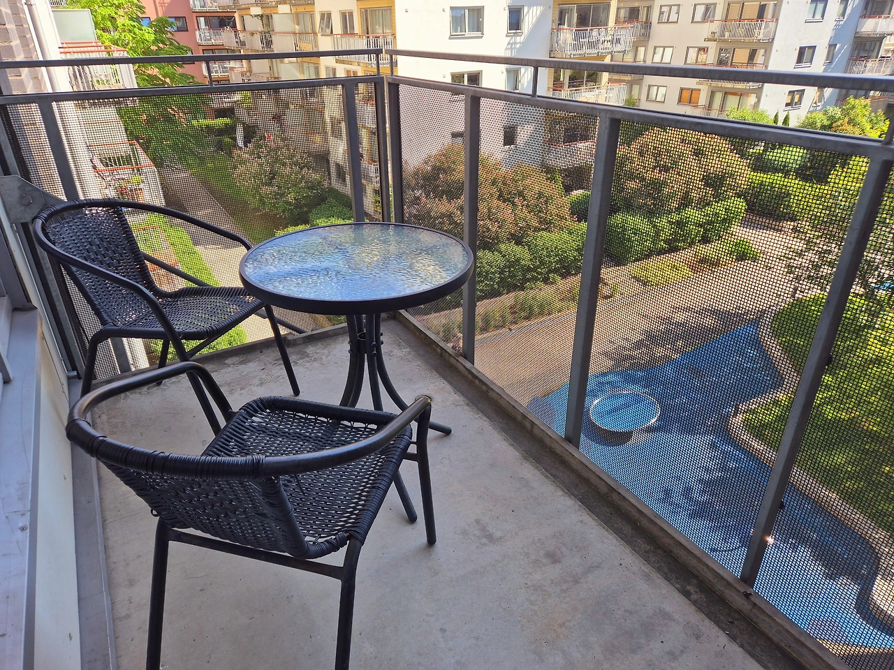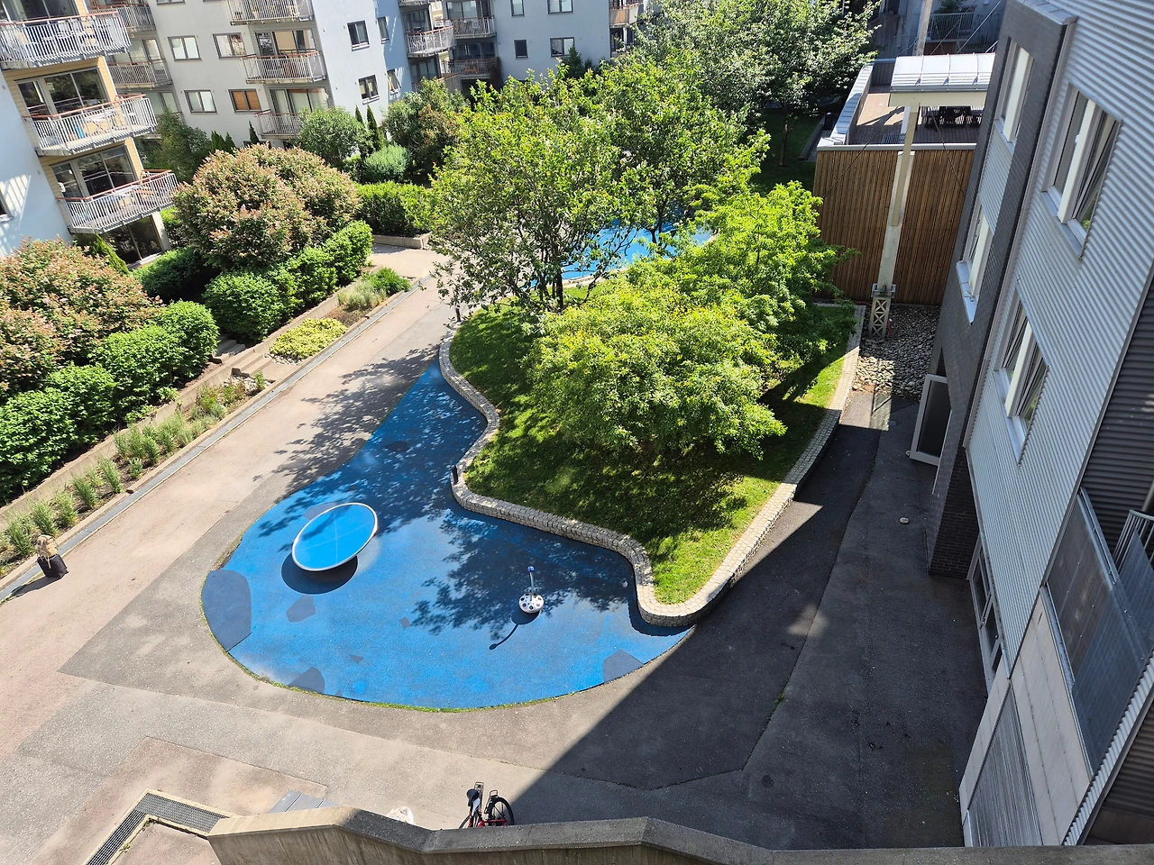 아침에 일어나 발코니로 나가 보니 아파트 단지인 듯했다. 안뜰이 잘 정리되어 있어 아늑하고 편안하게 느껴졌다.