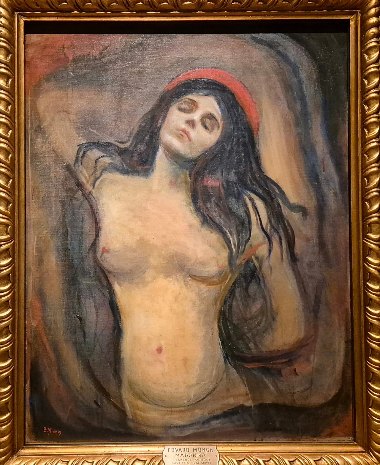 뭉크는 보이는 것을 그리는 것이 아니라 본 것을 그린다고 자신의 노트에 적었다. 그러니 그의 작품은 속에서 농익어 나온 표현이라고 해도 될 것이다. 이 작품들 앞에서 왜 클림트가 떠올랐는지 모르겠다. 작품을 비교하는 것은 무의미하겠으나 클림트의 <유디트>와 <키스>가 박제된 아름다움이라면 뭉크의 <마돈나>와 <키스>는 실존의 아름다움으로 다가왔다.