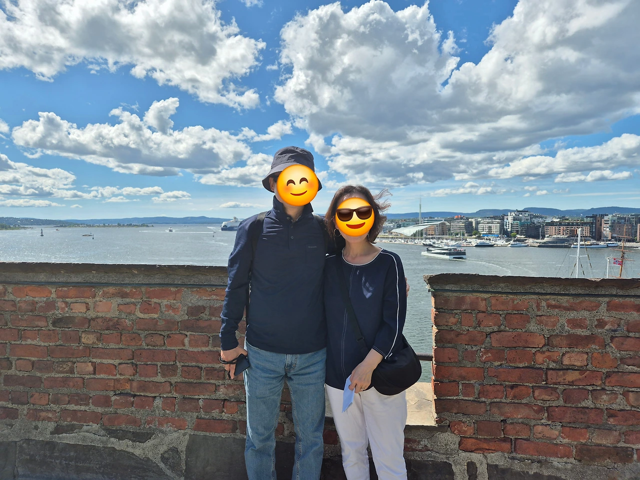 성곽 너머로 아름다운 피오르 해안을 보고 있는데 뒤에서 “두 분 사진 찍어 드릴까요?”하는 한국말이 들렸다. 돌아보니 20대로 보이는 서양 여성이 미소를 짓고 있었다. 한국말을 어쩜 그리 잘하냐고 물으니 한국에 잠깐 있었다고 했다. 언어란 이런 것이구나. 여러 말이 섞여 있어도 거리와 공기를 뚫고 그대로 귀에 꽂히는 모국어의 힘이라니. 그녀는 여러 장 사진을 찍어 주고 가볍게 인사를 하고는 일행 속으로 들어갔다.