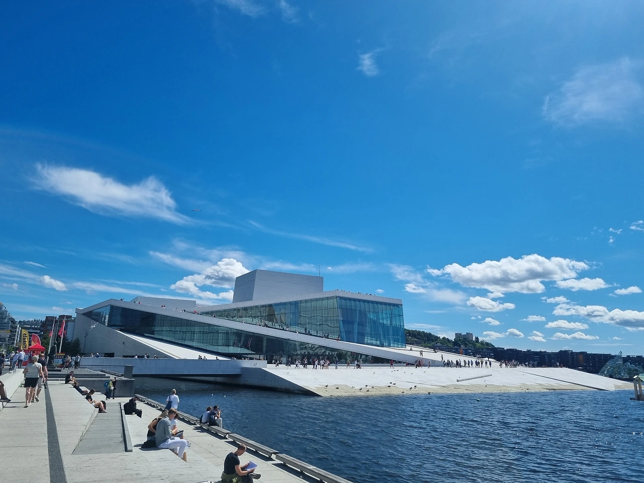 미술관을 나와 어젯밤 노을을 기다렸던 오페라 하우스 앞을 지났다. 눈이 부실만큼 강하고 투명한 햇빛이 하얀 대리석의 오페라 하우스 위로 쏟아져 내렸다. 이와 대비를 이룬 시리도록 파란 피오르에는 성급하게 바다로 뛰어든 사람들도 보였다.
