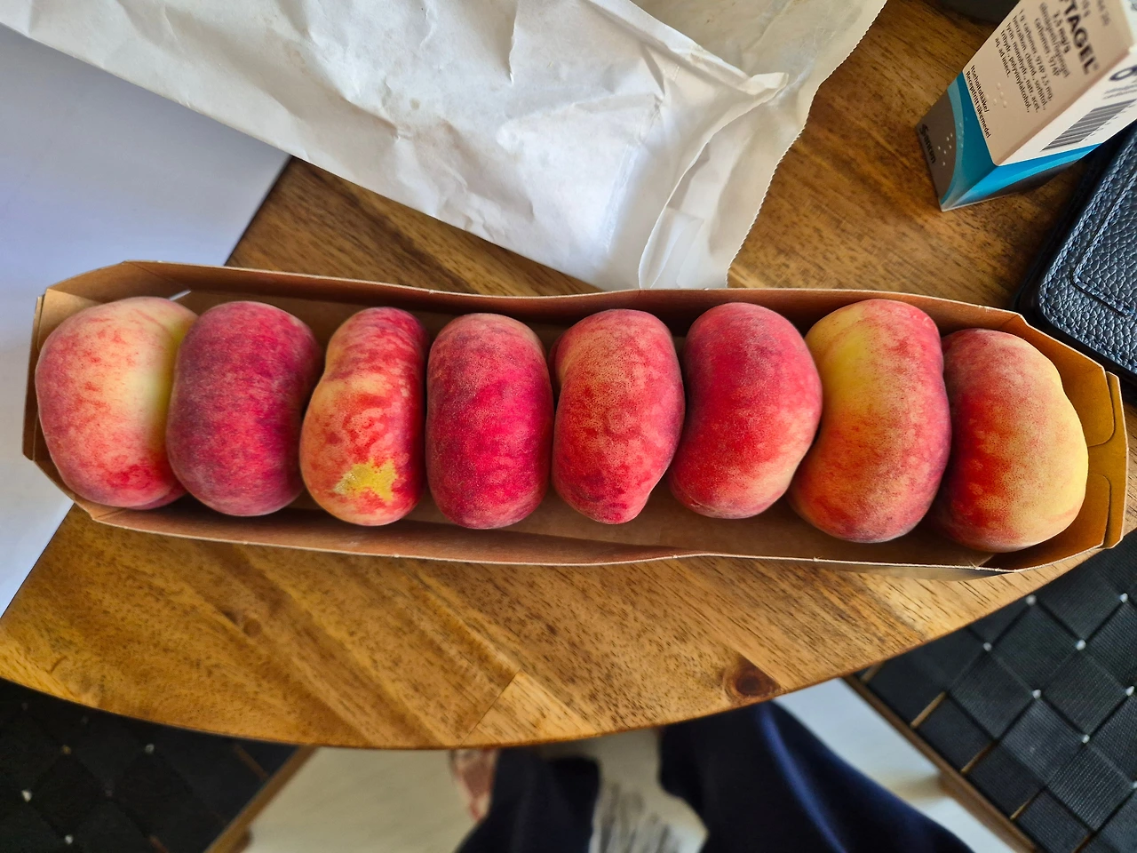 짐을 풀어놓고 간단히 장도 볼 겸 동네 산책을 했다. 여느 유럽처럼 노면전차가 지나다녔고 거리는 한산했다. 장을 보러 들른 마트에 납작 복숭아가 보였다. 납작 복숭아는 우리 부부에게 첫 유럽 자유여행지였던 파리의 추억을 소환하는 각별함이 있는 과일이다. 그래서인지 납작 복숭아가 보이면 예외 없이 장바구니에 담게 된다.