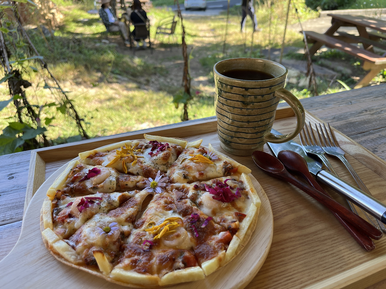 마침, 알맞은 식당을 찾고 엄마의 풍경구경에 동참했다. “와우. 풍경이 가을 자체였다.” 사진을 찍지 않을 수 없었다.