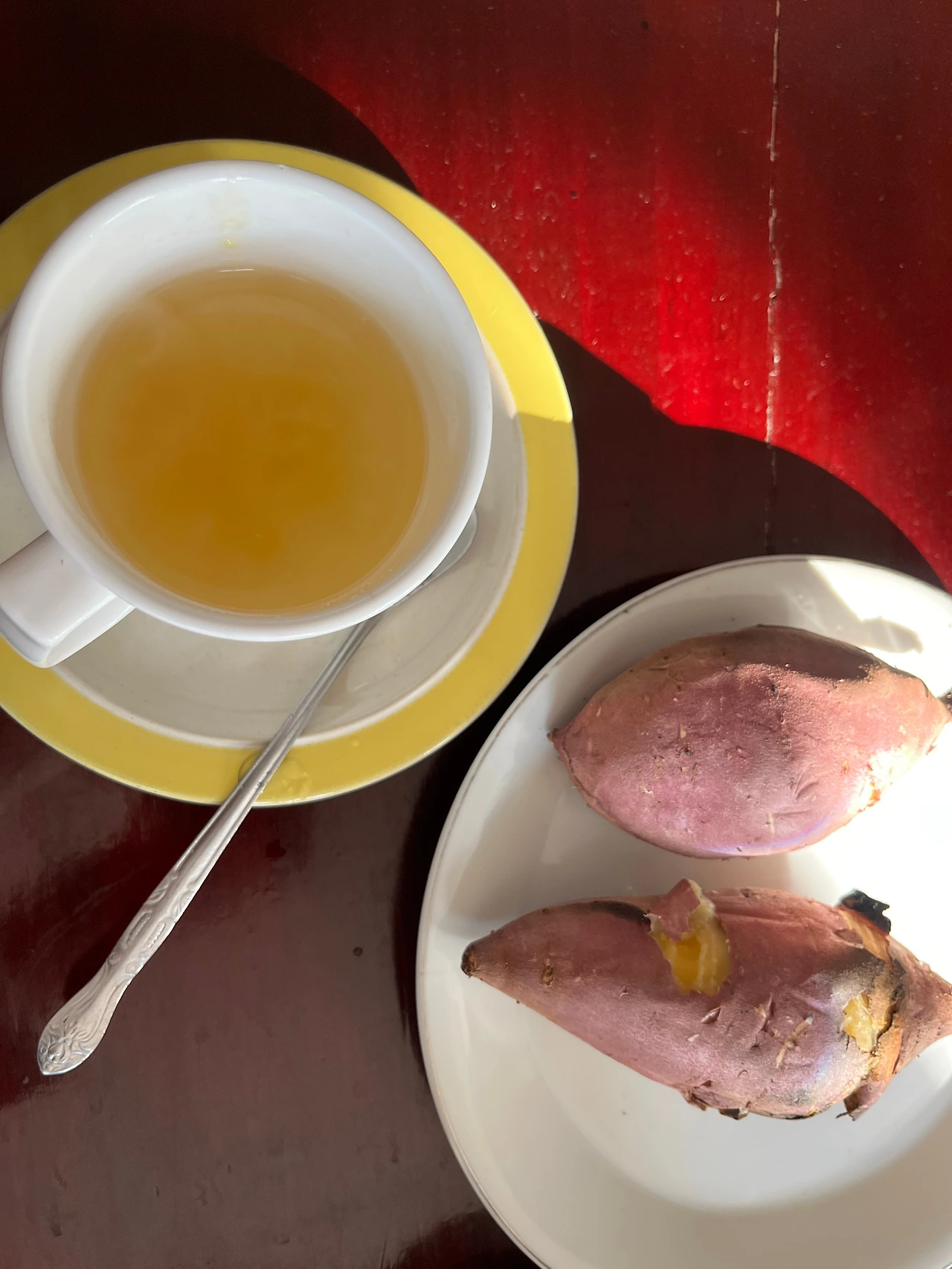 유자차가 들어있는 찻잔이 있었다. 그리고 고구마를 굽느라 분주한 어르신이 있었다.