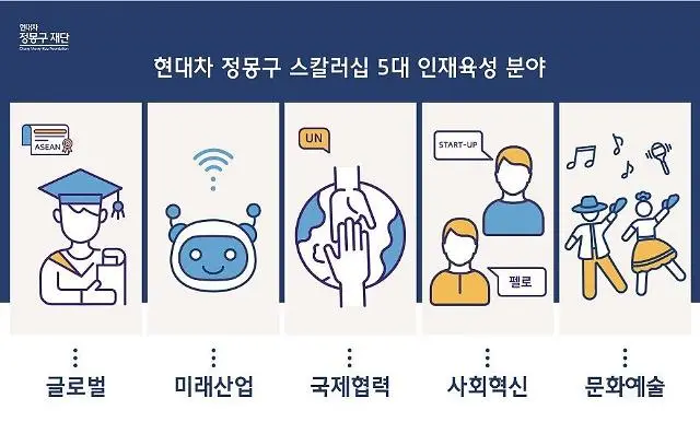 이러한 기업 장학사업의 특징은 미래 인재에 대한 장기적 투자다. 현대차정몽구재단 또한 올해부터 ‘지속가능한 사회를 위한 미래 세대 인재육성’이라는 새로운 방향성을 통해 지난 25일 ‘현대차 정몽구 스칼러십 5년 계획’을 발표하며 새로운 미래 인재 육성 사업을 시작했다. 현대차 정몽구 스칼러십은 국가 성장의 기반이 되는 미래인재 육성 플랫폼으로, 향후 5년간 글로벌 미래산업 국제협력 사회혁신 문화예술 등 5개 분야 1100명의 미래 인재를 육성할 계획이다. 첫 번째로 글로벌 인재 육성 사업인 ‘현대차 정몽구 글로벌 스칼러십’은 아세안 8개국의 우수 석박사 325명을 한국의 서울대, 연세대, 고려대, 카이스트, 한양대, KDI 등 6곳에서 유학할 수 있도록 지원한다. 선발된 인원에게는 졸업 시까지 등록금 전액, 매달 100만원의 학습지원비, 정착지원금 250만원, 졸업격려금 100만원을 지원한다. 두 번째로 미래산업 인재 장학사업인 ‘온드림 미래산업 장학금’은 지능정보기술, 바이오헬스, 에너지 신산업 등 미래산업 분야 대학(원)생 275명을 선발한다. 졸업할 때까지 등록금 전액, 매달 30만원의 학습지원비, 국제 학술대회 논문게재 및 학술대회 참가 시 지원금뿐 아니라 기존의 정몽구 장학생이 해외 100위권 우수 대학 진학 시 학기당 최대 500만원의 장학금을 최장 5년까지 지원한다. 세 번째로 문화예술 미래 인재 장학사업인 ‘온드림 문화예술 장학금’은 클래식, 무용, 국악 분야에서 세계를 무대로 활약할 문화예술 분야 리더 200명을 육성한다. 대학생은 등록금, 매달 30만원의 학습지원비와 해외 우수 대학 진학 시 장학금을 지급하며, 중·고등학생은 학기당 400만원의 학습지원비를 지원한다. 특히 국제 콩쿠르 입사 시 추가 장학금을 지원한다. 네 번째로 ‘온드림 글로벌 아카데미’는 고려대학교 일민국제관계연구원과 협력해 국제협력 분야 리더 150명을 양성한다. 선발한 인원은 1년간 국제관계 교육과 국내외 현장학습, 국제관계 분야 리더와의 멘토링을 제공하며, 졸업 후 국제기구 진출 시 1인당 최대 900만원의 진출 지원금도 지급한다. 마지막으로 ‘H-온드림 스타트업 그라운드’는 사회문제를 혁신적 비즈니스로 해결하는 스타트업 150개 팀을 선발한다. 초기 단계의 스타트업을 지원하는 온드림 A, 성장기 스타트업을 육성하는 온드림 B, 현대차그룹과 함께 환경문제를 해결할 스타트업을 선발하는 온드림 C 등 세 가지 트랙을 통해 소셜벤처의 성장 단계별 인큐베이팅·액셀러레이팅·투자 플랫폼을 구축하고 있다. 선발팀에게는 최대 2억원의 사업비를 지원한다.