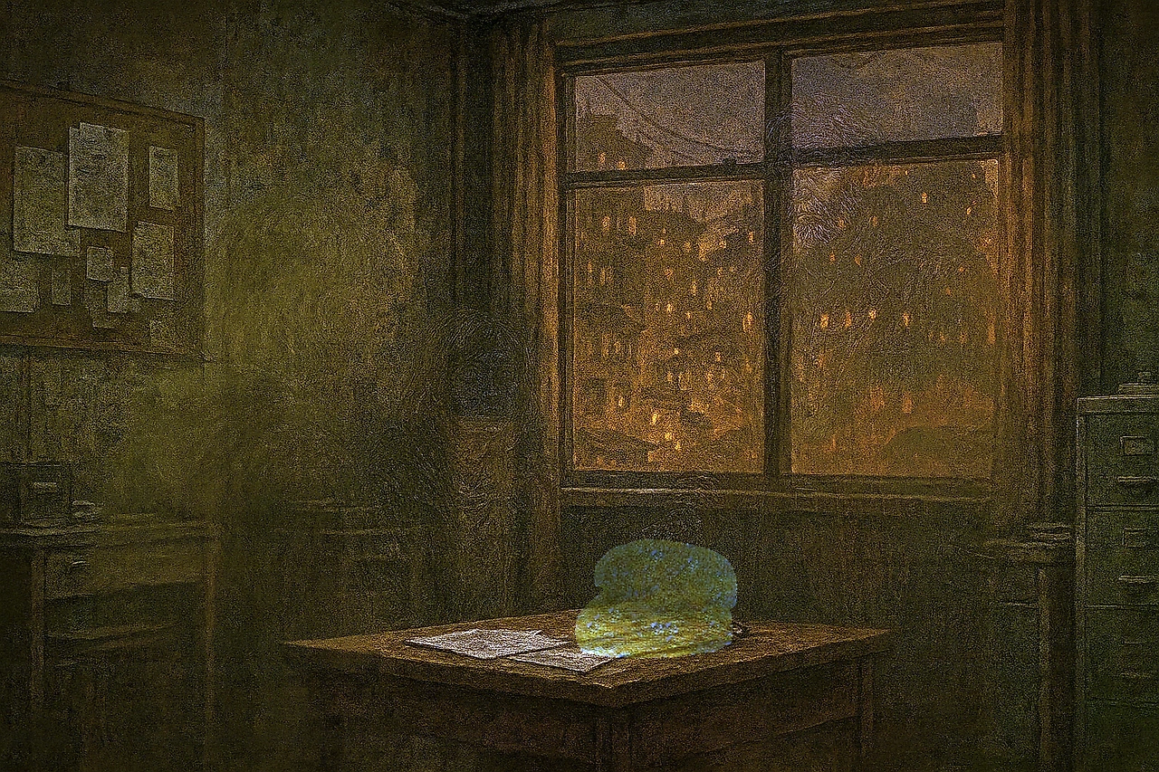 리암 아저씨를 따라 도착한 곳은 식료품점 3층의 조그만 사무실이었다. 창밖으로는 낡고 빽빽한 빈민가의 골목들이 펼쳐졌고, 먼지 섞인 궤도기지의 조명이 유리창에 어슴푸레 반사되고 있었다.