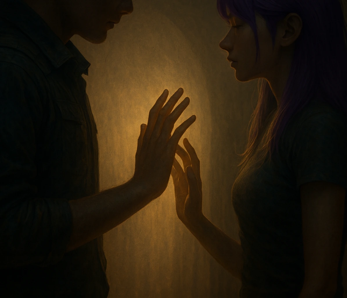 잠시 후, 그녀가 내게 다가와 말없이 팔을 뻗어 안았다. 그 포옹 속에서 나는 그녀의 떨림을 느꼈고, 그 떨림은 나의 심장 박동과 거의 구분할 수 없을 만큼 닮아 있었다. 숨을 쉬는 것조차 어려울 만큼 가까운 온기가 느껴졌다.