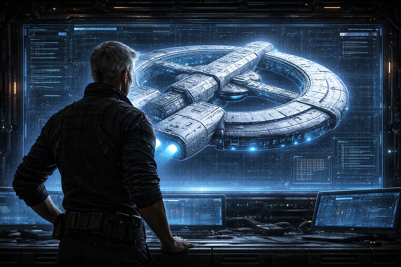 로쉬의 연구실의 중앙. 커다란 홀로그램 화면 앞에 로쉬가 서서 화면에 떠오른 새로운 탐사선의 설계도를 바라보고 있었다. 그는 각 부분의 세부 모듈을 터치하며 그와 관련된 데이터들을 이리저리 들여다보았다.