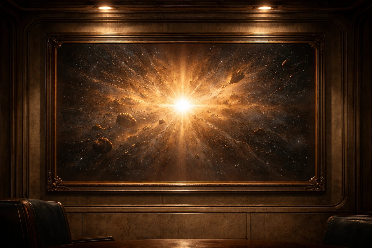 함장실의 조명이 아주 미세하게 변했다. 벽면의 빅뱅 그림이, 마치 다시 한번 폭발을 준비하듯 선명해졌다.