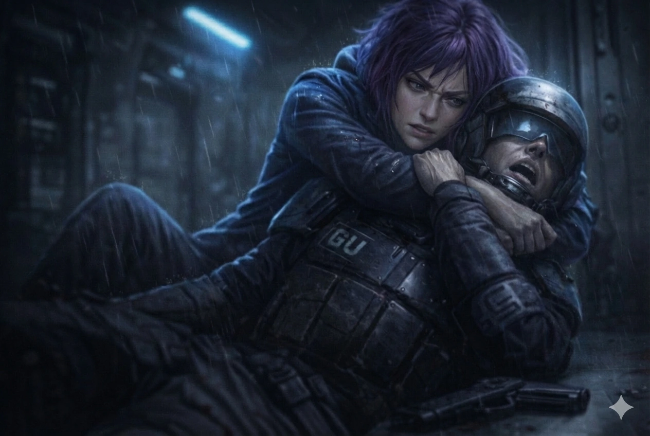 그곳에도 역시 인간 병사들이 배치되어 있었다. 나를 발견한 그들이 총을 겨누었지만, 내 조준이 더 빨랐다. 내 손에 들린 권총의 총구가 불을 뿜었고, 그들의 팔과 다리에 정확히 명중했다. 쓰러진 병사 중 한 명이 경보를 울리려는 듯 손목의 단말기를 더듬거렸다.