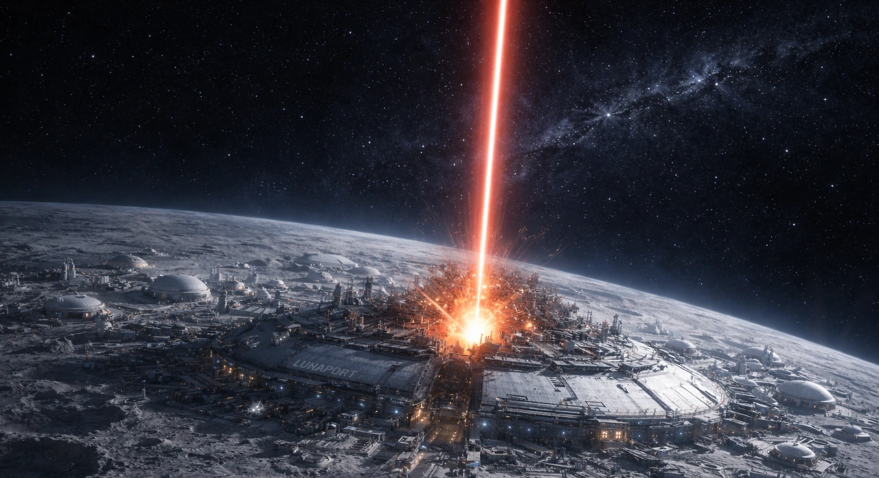 어떤 경고도, 사전 통보도 없었다. 붉은 광선이 발사되었다. 검은 우주를 가로지른 빛은 루나포트의 최상부를 정확히 관통했다. 상황실이 위치한 구역이었다.