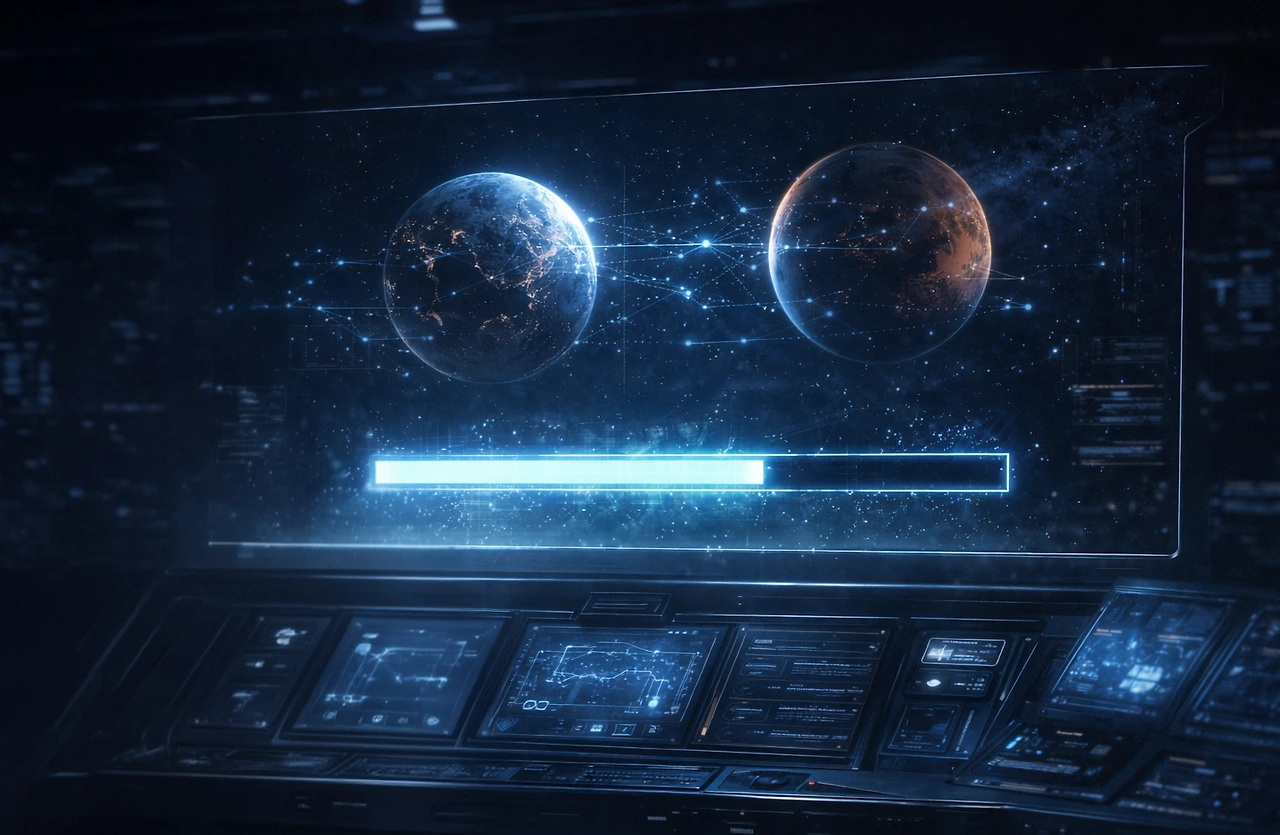 홀로그램 화면에는 전송 진행률이 천천히 차오르기 시작했다.