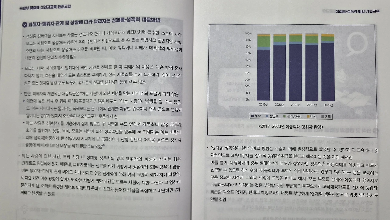 대법원 판례의 영향이었을까, 2018년 12월에 개정된 양성평등기본법에 의해 공공기관 근무자에 대한 성인지 교육이 의무화되었다. 그리고 내가 몸담고 있는 군(軍) 조직에도 그 교육이 실시되기 시작했다.