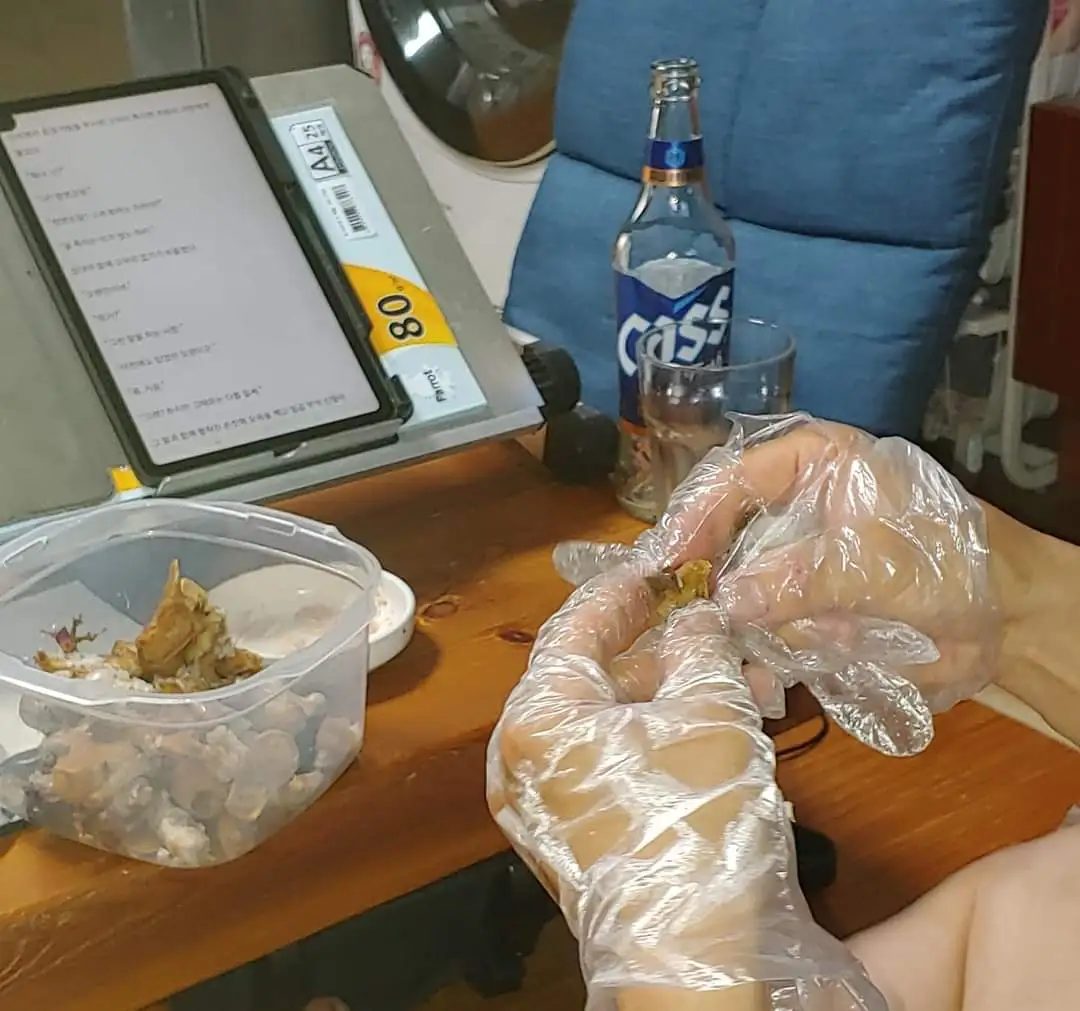 양손에 비닐장갑까지 끼고서 맛있게 먹는 모습이 복스러웠다.