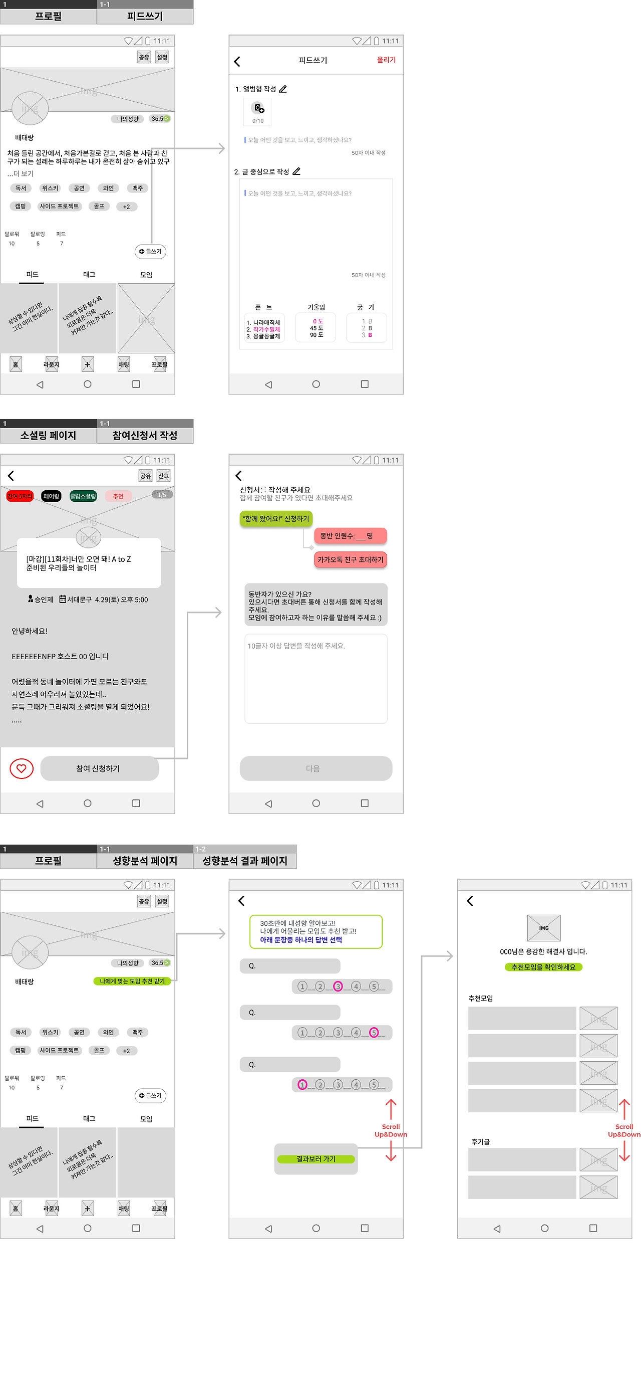 요구사항 정의서 & 와이어프레임 & 스토리 보드 작성