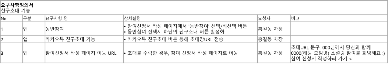 초대장은 "000님께서 당신과 함께 0000(모임명)모임에 함께 참여하길 희망합니다." 참여신청서 작성 하러가기 > 문구와 함께 url 클릭시 참여신청서 작성 페이지로 이동하게 된다.