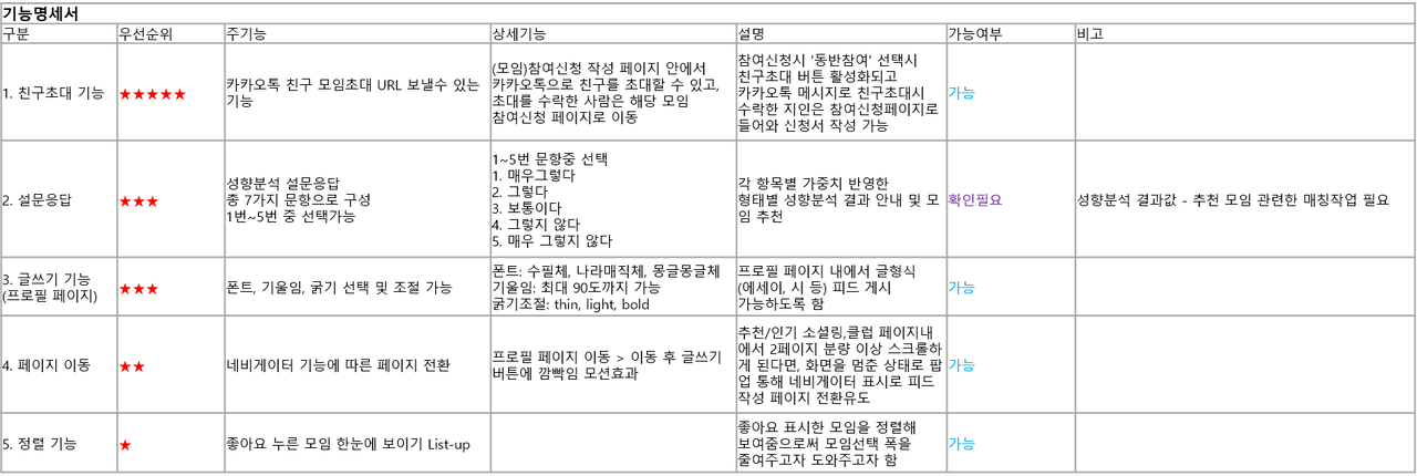 기능명세서/ 핵심기능 정의