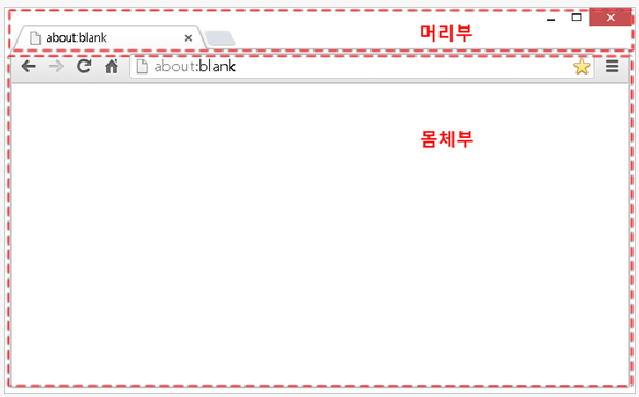 <head> 와 <body> 영억으로 구분되며 제목(머리부)과 본문(몸체부)에 해당되는 부분으로 분리되어 진다.