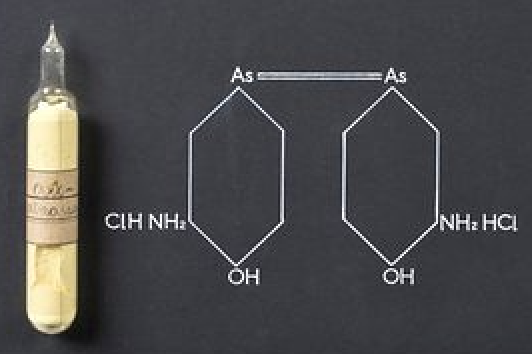 매독에 대한 실질적인 치료는 20세기 초인 1905년, 드디어 독일에서 트레포네마 팔리튬이라는 매독을 일으키는 원인균을 발견하게 되면서 1910년 비소를 이용한 매독치료제 살바르산(Salvarsan) 606이 나옵니다.