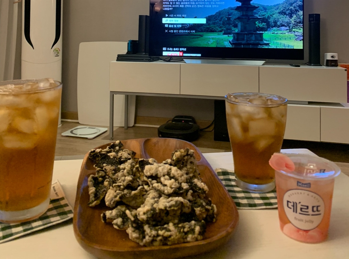 냉장고 안쪽에 있는 가장 시원한 맥주 한 캔과 김부각을 가져와 이야기를 이어갔다.