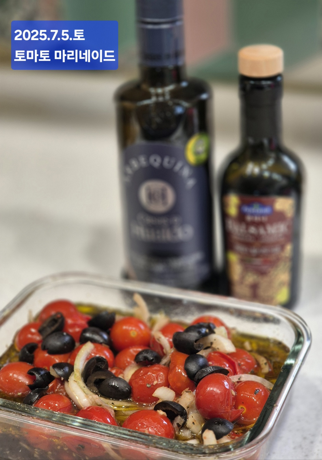 아! 마리네이드를 만들자! 큰 토마토로 만들어도 되지만, 냉장고에 넣었다 먹으려니 자르는 게 일이었으니 간편하게 방토로.