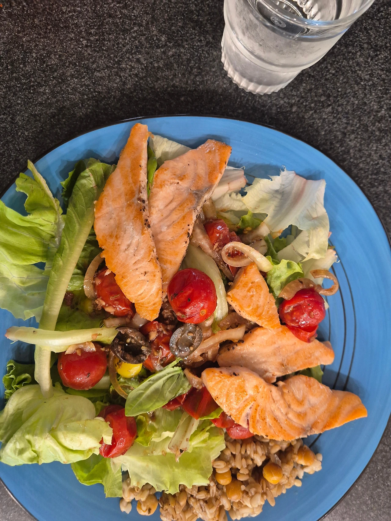 이제 푸른잎 채소만 있으면 뿌려먹으면 된다. 달걀반숙이나 연어구이를 얹으면 단백질도 보충된다.