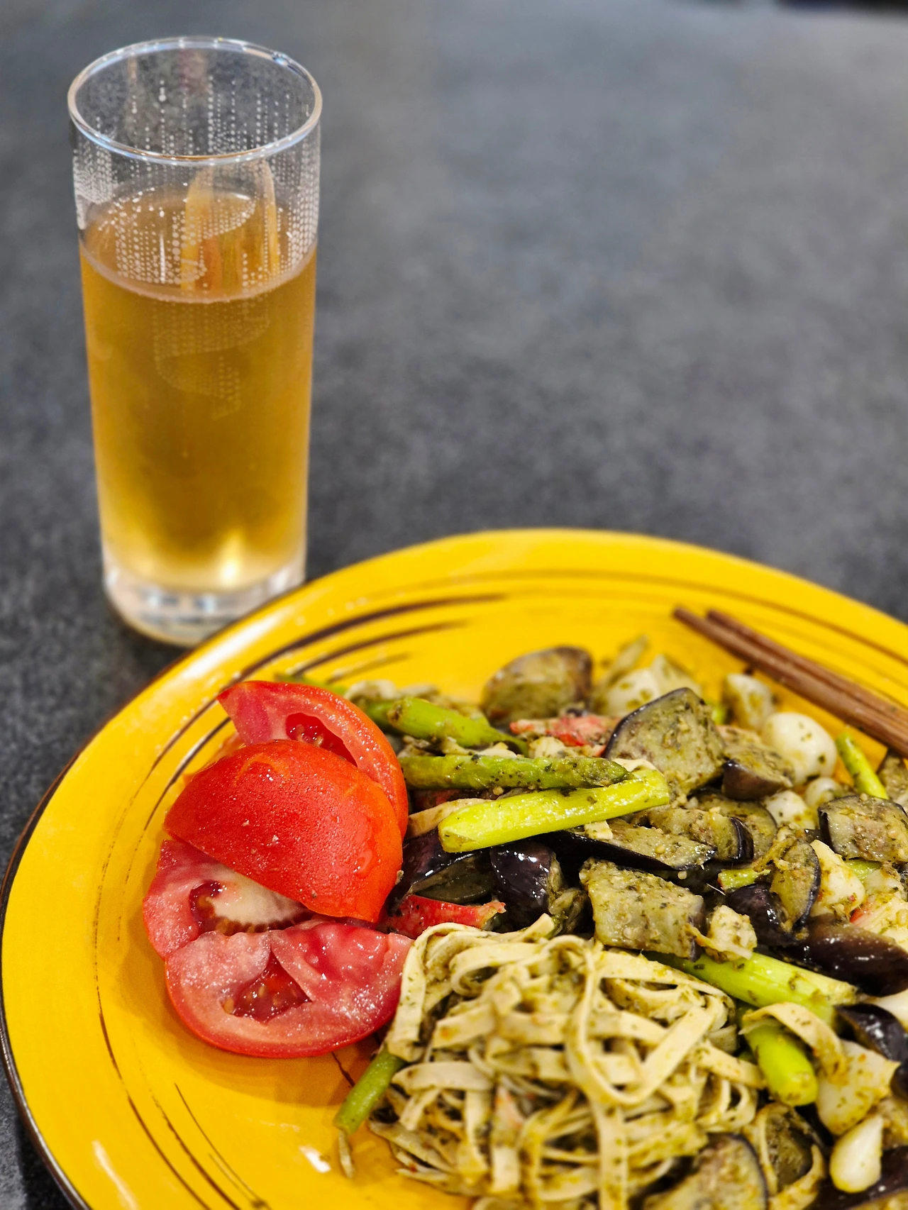 점심은 한동안 두고 먹던 채소들이 그 끝을 향해 가는 것이 보여, 그것들을 요리해 먹는 게 목표. 가지는 그래도 선방했다. 가지를 하나하나 키친타올로 감싸 다섯개씩 지퍼백에 넣어두었더니 한달이 지났는데도 별 이상이 없다. ...고 생각했ㅇ나, 갈라보니 갈색 씨가 눈에 띄기 시작할 타임이었다. 아스파라거스는 여전히 싱싱했지만 끝이 약간 물러가기 시작. 깐 마늘 보관하기가 너무 어려워서 이번엔 통마늘을 조금 사봤다. 먹을 때마다 까겠다!는 포부를 가지고. 새로 구입한 맛없는 두부면(적응 안되는 맛)도 뜯었다. 뭐 요리랄 게 있나, 칼질하고 올리브유에 볶아서 소금 후추 뿌리고, 구입한지 꽤 되었는데 아직 멀쩡한(그래서 의심스러운) 바질페스토와 후배선생님이 미국에서 사다준 알리오올리오 향료를 조금 넣었더니 맛있었다.