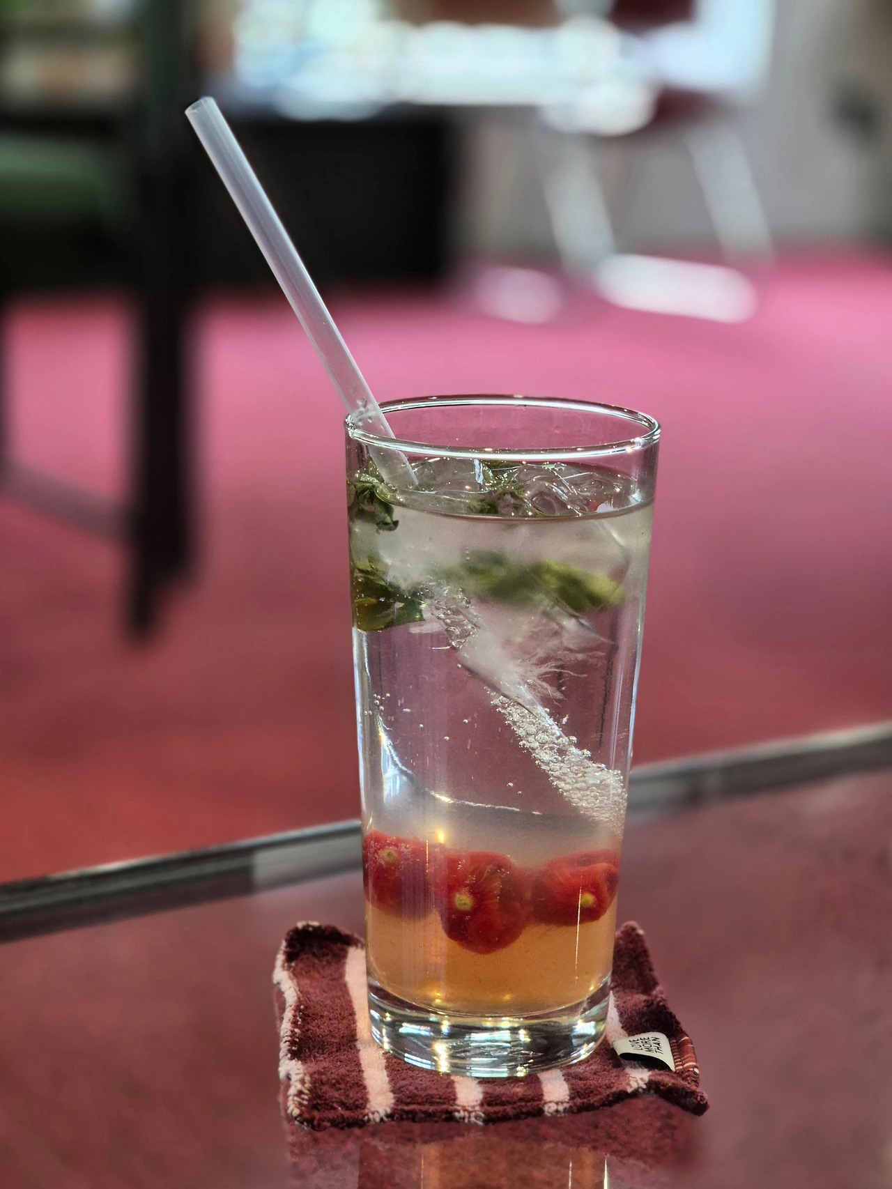 내가 좋아하는 바질과 토마토를 모두 넣었으니 얼마나 맛있겠어. 역시 맛 뿐 아니라 그 모습이 너무 청량했다.뭐 역시 단 건 어쩔 수 없지만. 이게 설탕에 재운 토마토와 바질에 탄산수를 타주는 거였다. 그래도 맛있긴 했다. 설탕을 줄여서 만드는 방법이 없을까? 한번 시도해봐야겠다..(만, 과일청을 설탕 말고 뭘로 만들 수 있을까?)