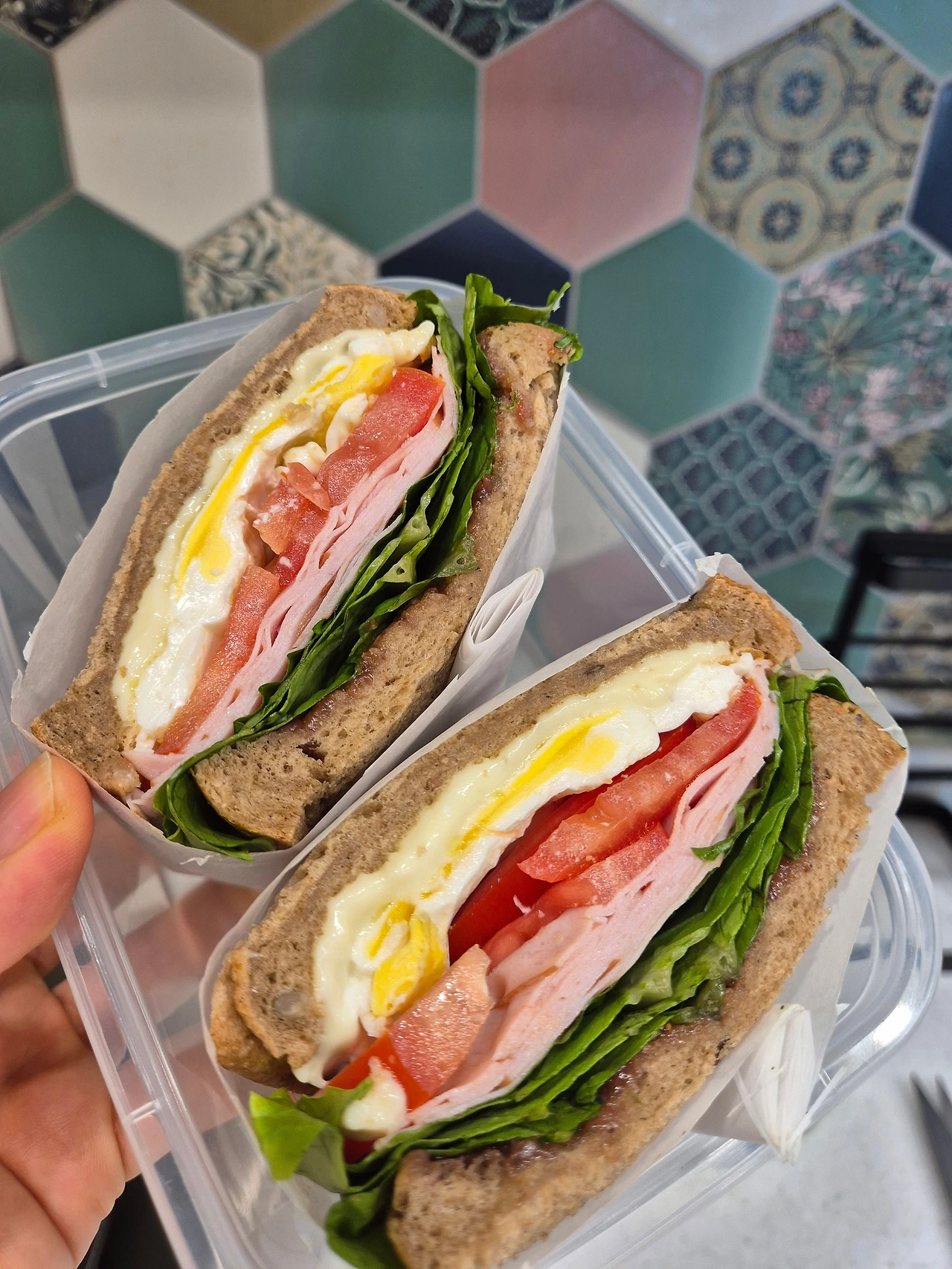일어나서 제일 먼저 하는 일은 아침식사 준비. 오래전에 구입해서 냉동해둔 슬라이스 햄을 꺼내 해동하고 물에 데친 후, 양상추와 토마토를 끼워넣어 샌드위치를 만들었다. 전날 중국에서 잠시 들어온 베이징한국국제학교에 근무하시는 샘과 북촌에서 만났는데, 안국153을 들러 잡곡식빵을 하나씩 사서 들려보내며 내 것도 구입. 빵을 좋아하지는 않지만, 이런 잡곡빵이나 호밀빵, 사우어도우, 깜파뉴 같은 건 가끔 너무 먹고 싶다. 153에 오랜만에 갔으니 나를 용서하자.