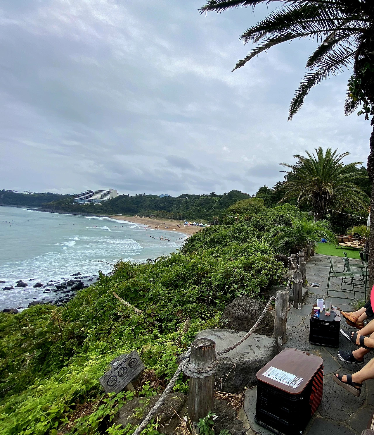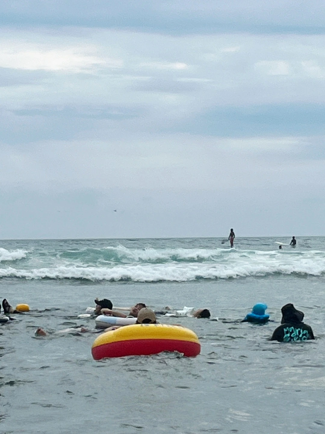 "벤츠 탈 나이에 튜브 타러 온 우리"들은, 튜브 하나씩에 매달려 신나게 파도를 탔다. 더 멀리 바다는 서퍼들의 차지여서 가두리양식장처럼 바글바글 좁은 구역에서 타긴 했지만 색달의 파도는 참 좋았다. 애들 크고 나서는 좀처럼 이럴 일이 없었어서, 너무 신나 흥을 끌어올린 나는 큰 파도에 뒤집혀 머리를 모래바닥에 꼬라박아 목부상을 당했지만, 이 글을 쓰는 지금은 거의 다 회복되었다.