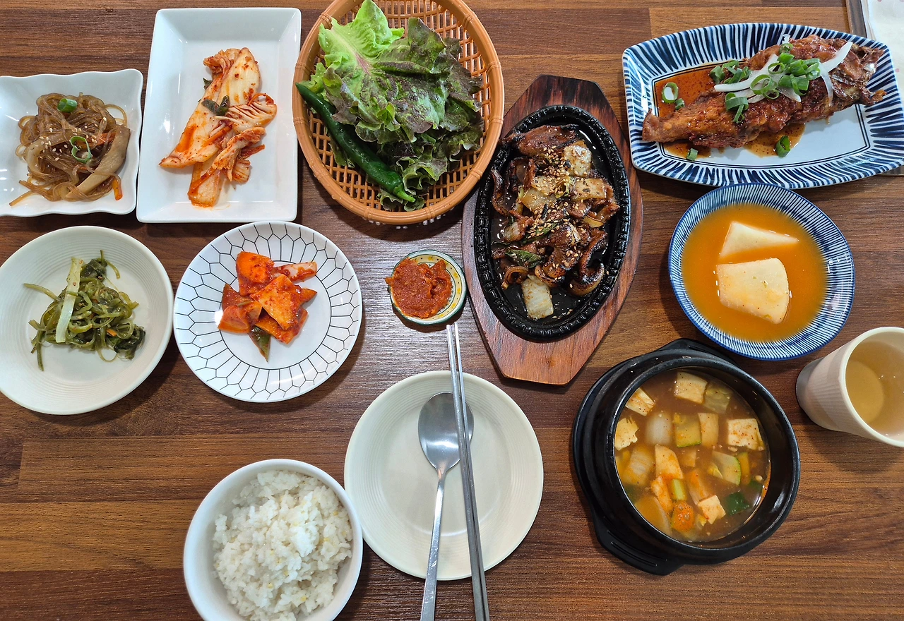 윤이 오기로 한 다음날, 아침 일찍 일어나 더워지기 전에 해안을 걸었다. 왕복 3킬로 정도 걷고 숙소에 돌아와 씻고 잠시 쉬었고, 이것저것 보다가 점심을 어디서 먹을까 즐거운 고민. 하지만 내 자리에 발령받은 새 교감과 통화를 하다가 시간을 놓쳐버렸다. 배가 너무 고파서 무작정 나서서 길 건너 '외가집'에 들어가 주문했다. 불맛 나는 간장돼지고기볶음에 생선(이름 모르겠다) 튀김, 정갈한 반찬에 맛있는 보리차까지 완벽한 식사였다.