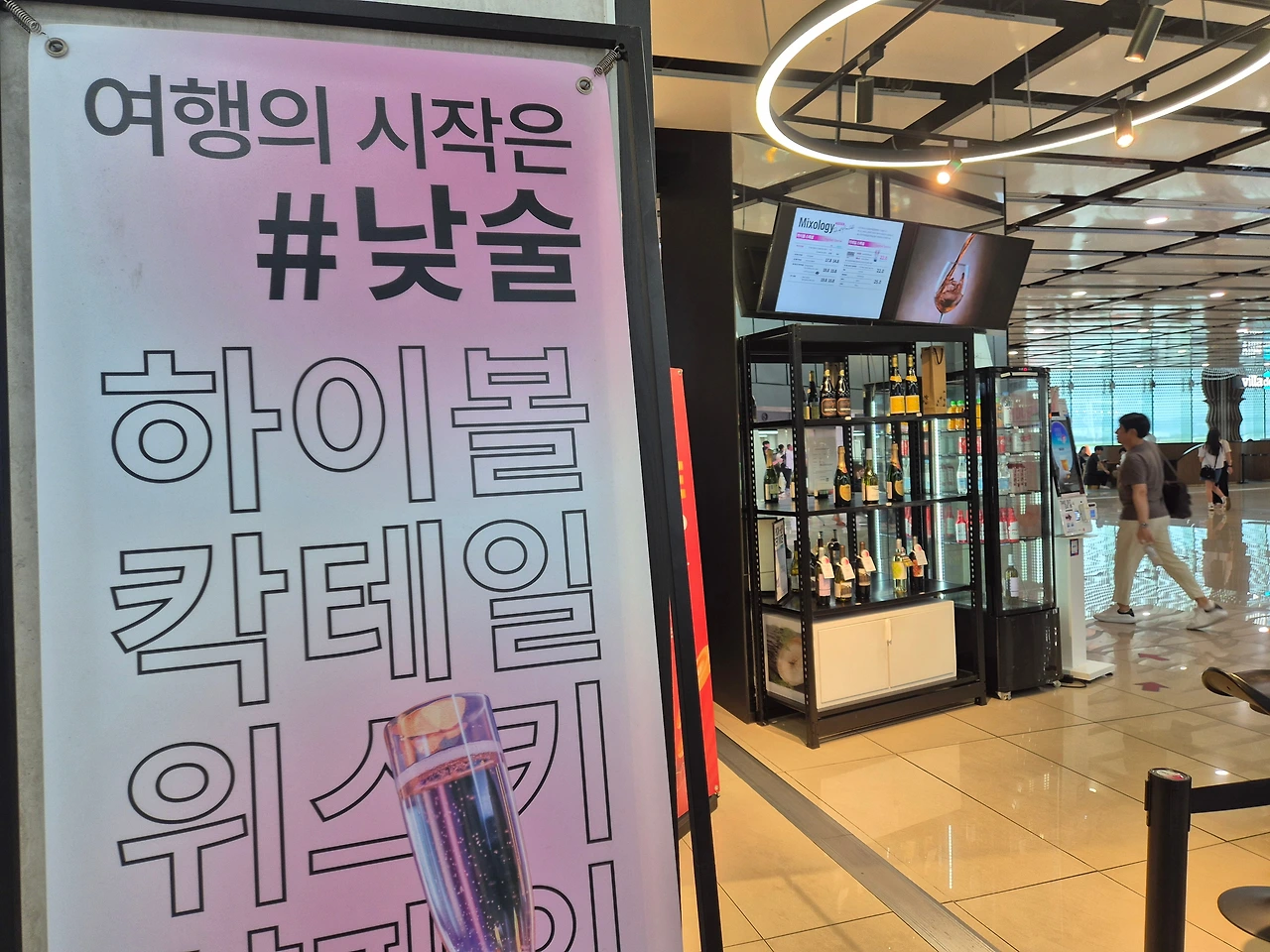 비행기를 오랜만에 타게된 6일. 검색대를 통과해 들어가니 '낮술'이라는 낭만적 단어가 보였다. 와, 이제 낮술도 내놓고 말할 수 있는 시대로구나...만 난 이제 술과는 상관없는 사람. 삼성카드에서 준 더라운지 커피쿠폰으로 앤젤리너스에서 커피한잔 마시며 시간을 보냈다. 창가보다는 복도쪽을 좋아하지만, 오랜만의 비행이라 창가를 선택했다.