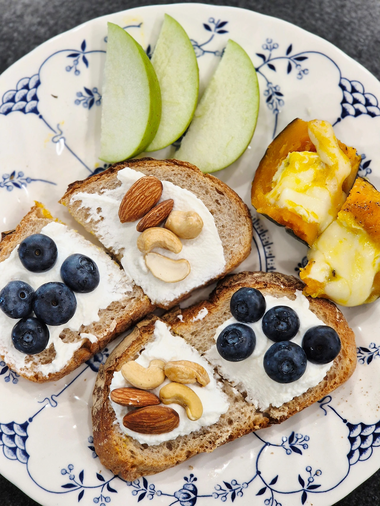 그릭요거트로 뭘할까 행복한 고민을 하다가 전날 나폴레옹빵집에서 사다둔 100퍼센트 통밀깜빠뉴가 있어 얹어 먹었다. 5분컷 단호박 에그슬럿도 만들었고, 어제 도착한 아오리 사과도 함께. 오랜만에 아들과 아침을 먹었다.