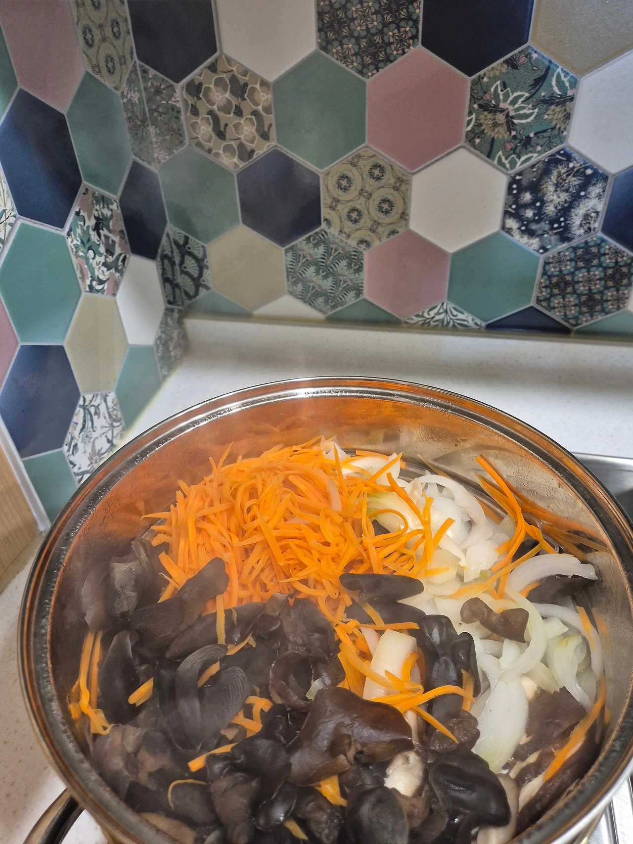 수개월 전 중국쪽에 다녀온 누군가가 질좋은 건조 목이버섯을 주어서 잡채나 할까 하고 한살림 당면을 사두었는데, 그로부터 또 수개월이 지났다. 이번에는 진짜 한번 해볼 생각이었다.
