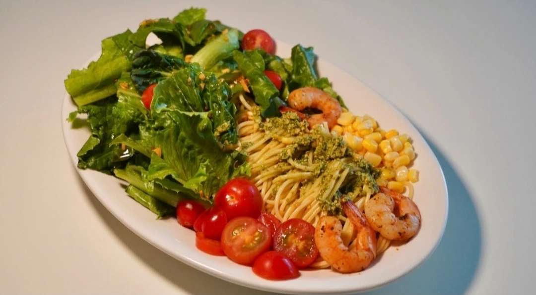 토마토바질 냉파스타. 고기전에 넘어온 큰아들.